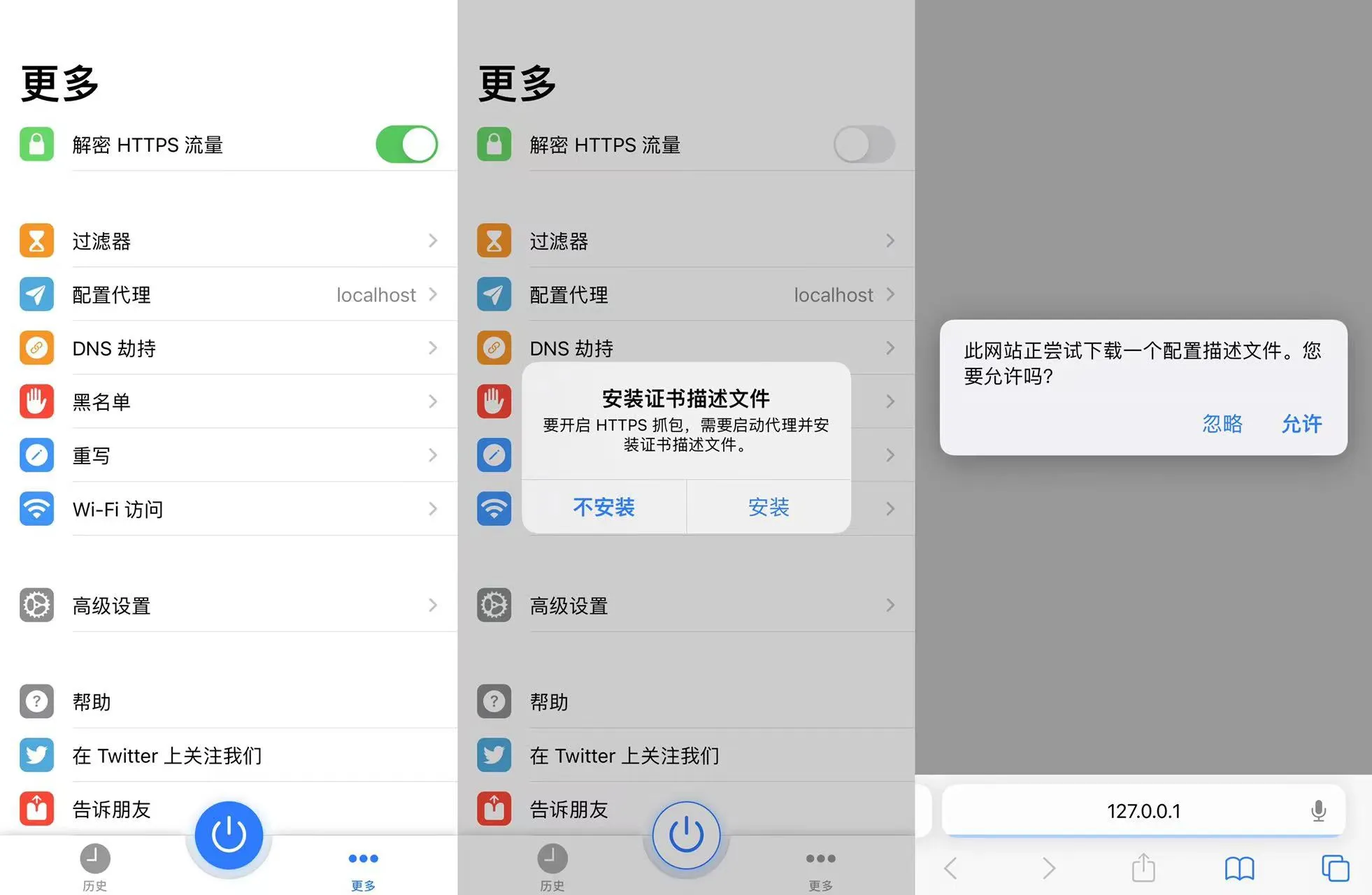 点击软件底部的更多,开启解密HTTPS流量