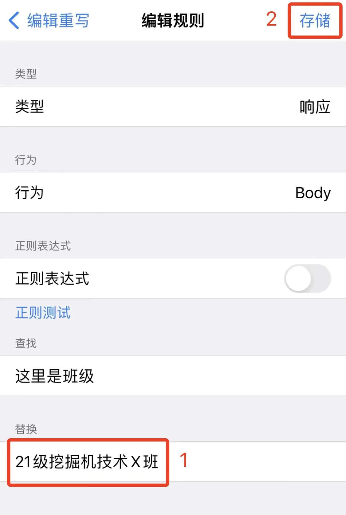 您需要修改规则中的“替换”内容