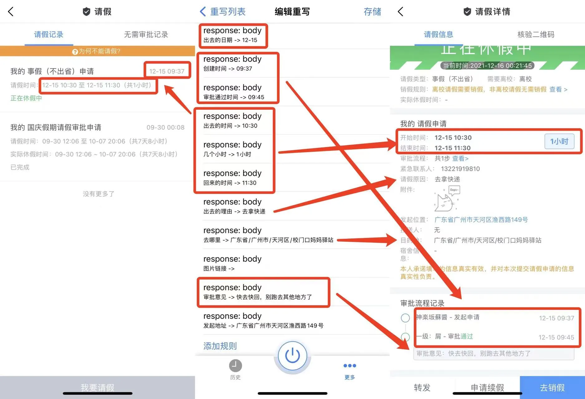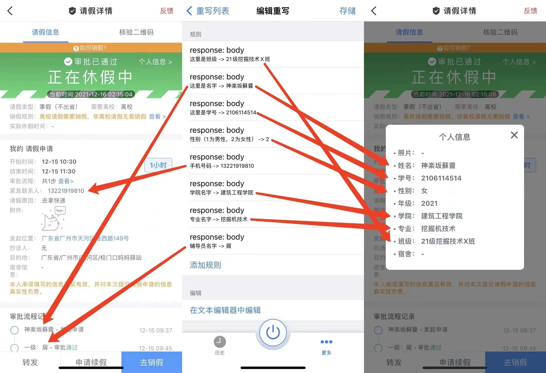 并在规则(3)中修改请假信息
